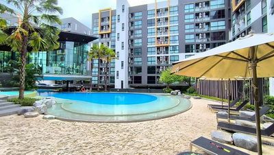 โดยเฉพาะโซนสระว่ายน้ำรูปทรงอิสระ พร้อมด้วยชายหาดจำลอง มีผืนทรายและเตียงนอนชายหาด เสมือนอยู่รีสอร์ทติดชายหาด พร้อมด้วยห้อง Fitness ขนาดใหญ่บนสระว่ายน้ำ ท่ามกลางต้นไม้ใหญ่ร่มรื่น