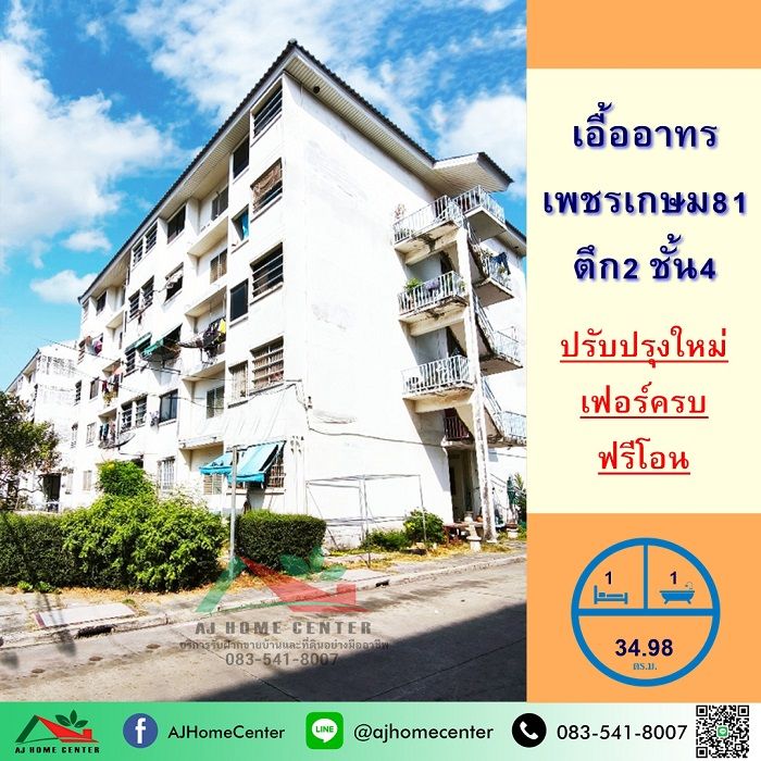 ขายเอื้ออาทรเพชรเกษม81 ขนาด34.98ตรม. ชั้น4 ตึก2 ปรับปรุงใหม่ ฟรีโอน