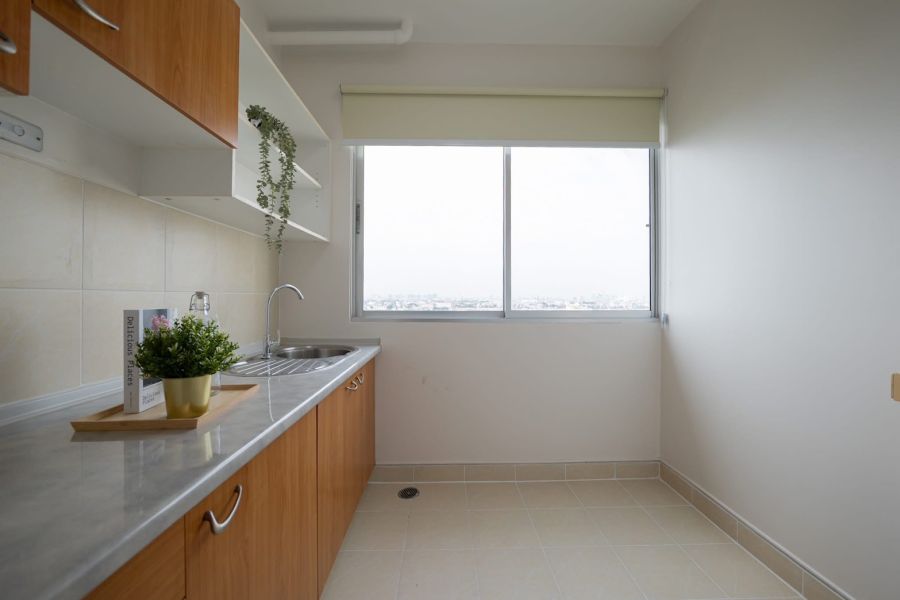 - ตัวห้องใช้แนวคิด Smart Design ออกแบบให้ระเบียงกันแดดกันฝนได้ (Flexy Balcony) พร้อมกั้นครัวเป็นสัดส่วน