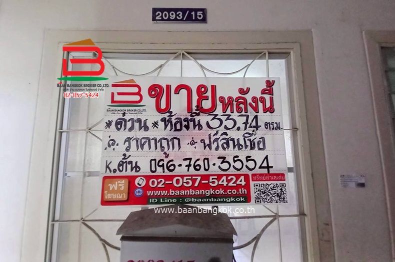 ประเภททรัพย์สิน : ห้องชุดเอื้ออาทรขนาด 33.74 ตารางเมตร อยู่ตึกที่ 93 ชั้น 2 ภายในห้องจะประกอบไปด้วย 1 ห้องนอน 1 ห้องโถง 1 ห้องน้ำ
