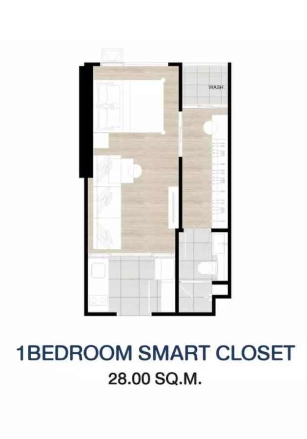 เนื้อที่ 28 ตร.ม 1 Bedroom Smart Closet วิวแม่น้ำ
