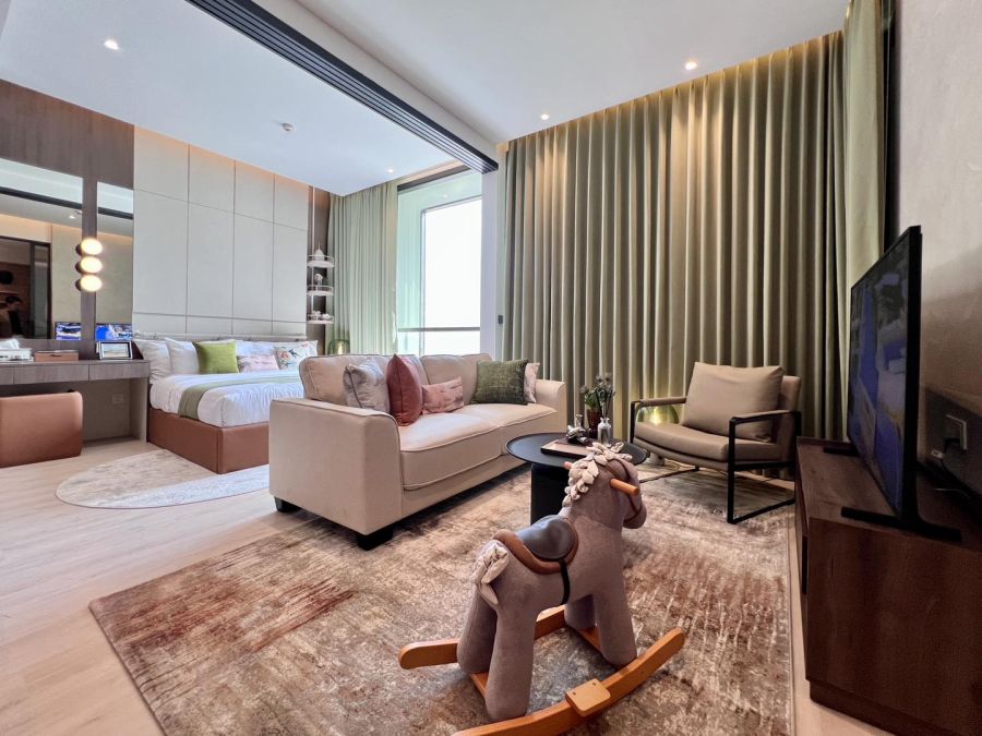 คอนโด High rise แนวสูง 56 ชั้น 548 ยูนิต มีแบบห้องให้เลือก 5 แบบ ขนาด 1-3 ห้องนอน และห้องเพนท์เฮ้าส์ (มีแค่ 6 ยูนิต พร้อมสระว่ายน้ำส่วนตัว) พื้นที่ใช้สอย 34 - 461 ตร.ม. ได้ห้องหน้ากว้าง 7.40 ม. เพดานสูง 3 ม. พร้อมหน้าต่างกระจกแบบ Full-Height มองเห็นวิวทะเลทุกยูนิต* ขายแบบ Fully Fitted แต่ได้เฟอร์แบบจัดเต็ม (แบบ Furnished)