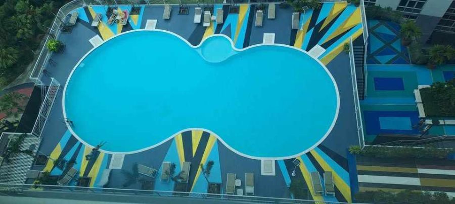 Large communal swimming pool.