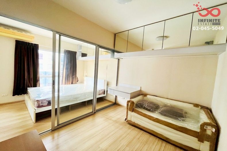 ตกแต่ง : แอร์ 1 เครื่อง บิวท์อินชั้นเก็บของ ตู้เสื้อผ้า ชั้นวางทีวี และครัว เฟอร์นิเจอร์บิวท์อินพร้อมอยู่