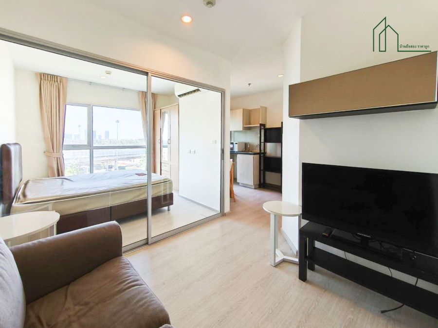 - เคาน์เตอร์ครัว + ตู้เย็น + ไมโครเวฟ - โต๊ะทานข้าว + โซฟา + ทีวี