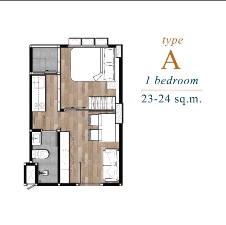 - 1 ห้องนอน 1 ห้องน้ำ