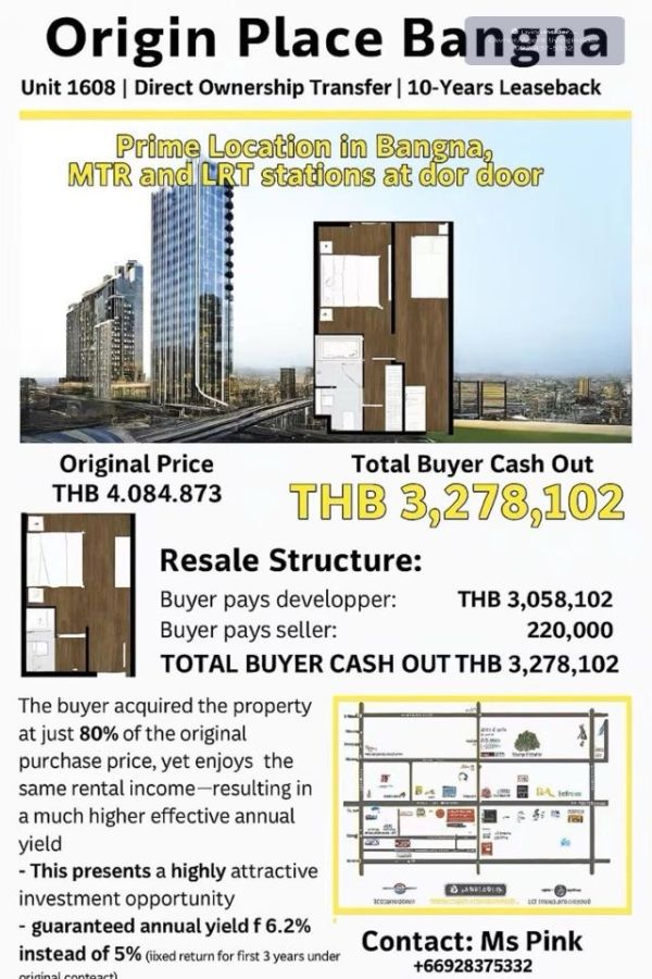 CM04395 ขายด่วน ขายดาวน์ คอนโด ออริจิ้น เพลส บางนา Origin Place Bangna ซอย บางนา-ตราด 48 แขวงบางนาใต้ เขตบางนา กรุงเทพมหานคร 10260