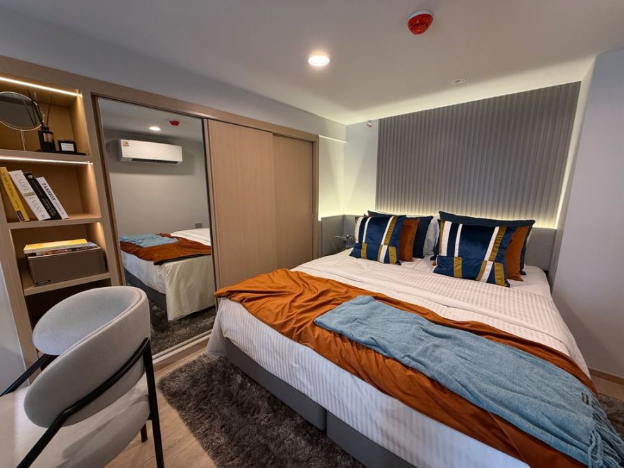 ● เฟอร์ได้ตามรูป (ยกเว้นของตกแต่ง) ตู้เสื้อผ้าบิลท์อินเรียบร้อย พร้อมบิลท์อินหัวเตียงและห้องนั่งเล่น