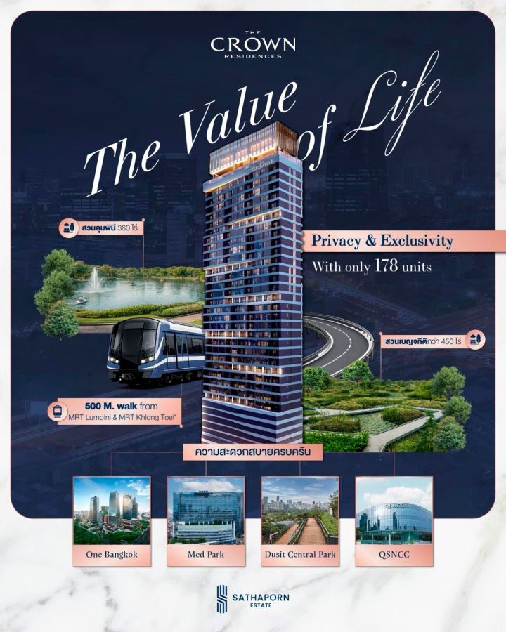 The Crown Residences คอนโดมิเนียม High Rise ติดถนนพระราม 4 ใกล้ทางด่วน และอยู่ระหว่าง MRT ลุมพินี และ MRT คลองเตย เริ่ม 6.9 ลบ.