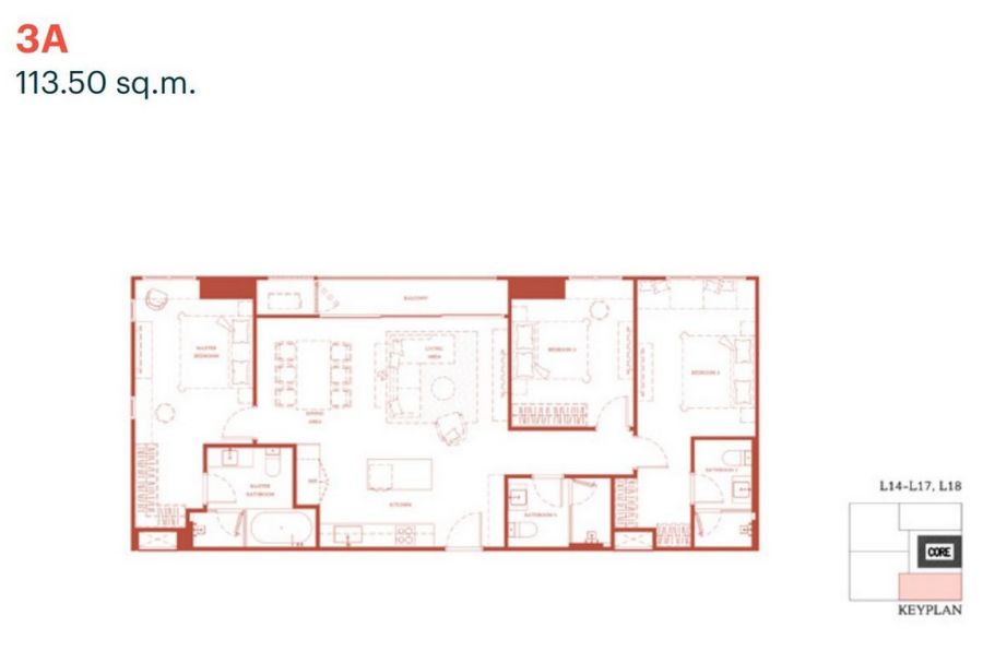 ● เป็น 3-Bedroom ขนาด 113.50 ตารางเมตร ที่วิวโล่งมีแค่ 5 ห้องทั้งโครงการ อยู่ที่ชั้น 14-18 ตอนนี้ทางโครงการไม่มีขายแล้ว