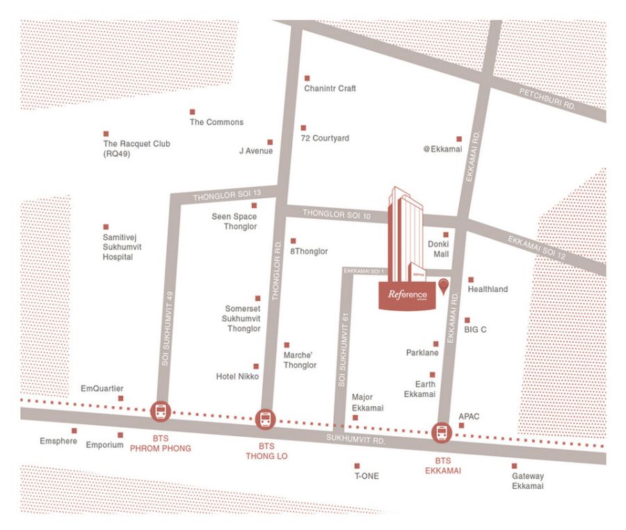 Reference เอกมัย เป็นคอนโด High Rise สูง 44 ชั้น จากทาง SC Asset มีจำนวนยูนิตเพียง 396 ยูนิต เน้นความเป็นส่วนตัว พร้อมที่จอดรถ 207 คันไม่รวมซ้อนคัน แบ่งออกเป็น Conventional Parking 157 คัน และ Automated Parking 50 คัน และมี EV Charger 6 จุด ตัวโครงการตั้งอยู่ติดถนนเอกมัย ห่างจาก BTS เอกมัยประมาณ 900 เมตร ใกล้ซอยทองหล่อ 10 ซึ่งเป็นซอยหลักที่เชื่อมต่อทองหล่อ-เอกมัย อยู่ตรงข้ามเวิ้งโบราณและอยู่ห่างจาก Donki Thonglor 170 เมตร