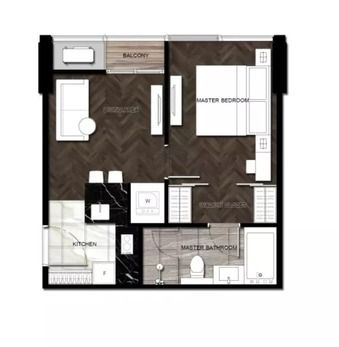 สภาพห้องใหม่ ไม่เคยมีคนเข้าอยู่ ตกแต่งสไตลเรียบหรูด้วยโทนสีเข้มและแต่งกระจกให้ห้องดูกว้างขวาง