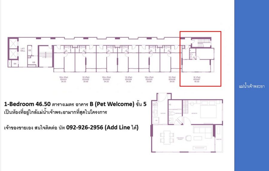 (เจ้าของขายเอง) 1-Bedroom Rare Item อยู่ใกล้แม่น้ำเจ้าพระยามากที่สุดในโครงการ คอนโด เลิฟ เจริญนคร ราคา VVIP