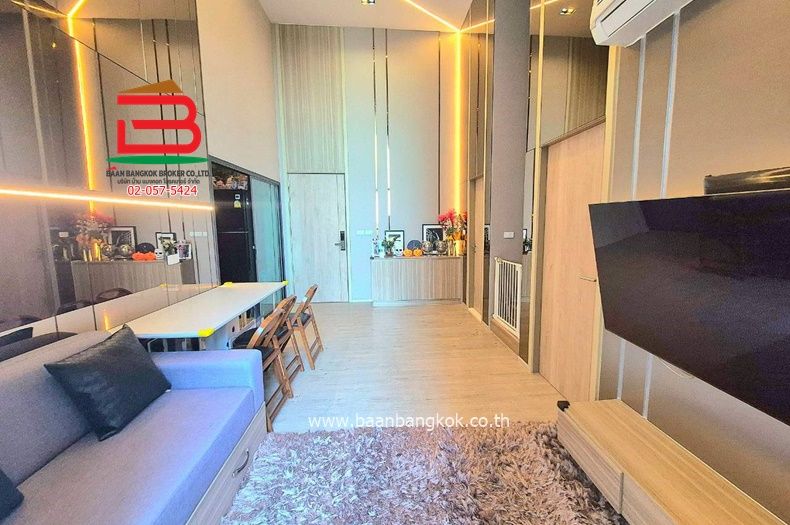 การตกแต่ง : ห้องสไตล์ Loft แบบห้อง Duplex 2 ห้องนอน 2 ห้องน้ำ (เฟอร์นิเจอร์ครบ) ห้อง Loft เพดานสูง 4.6 เมตร* สูง โล่ง โปร่ง สบาย ส่วนกลาง 6 ชั้น จัดเต็มทุกกิจหรรมปาร์ตี้ยันแคสเกมส์ ชั้น 8 (จาก 34 ชั้น) ขนาด 53.23 ตรม. 2 ห้อง 2 ห้องน้ำ 1 ห้องครัว 1 ห้องนั่งเล่น แอร์ 3 เครื่อง (ห้องนอน 2 นั่งเล่น) เครื่องทำน้ำอุ่น 2 เครื่อง ตู้เย็น , ไมโครเวฟ , ทีวี