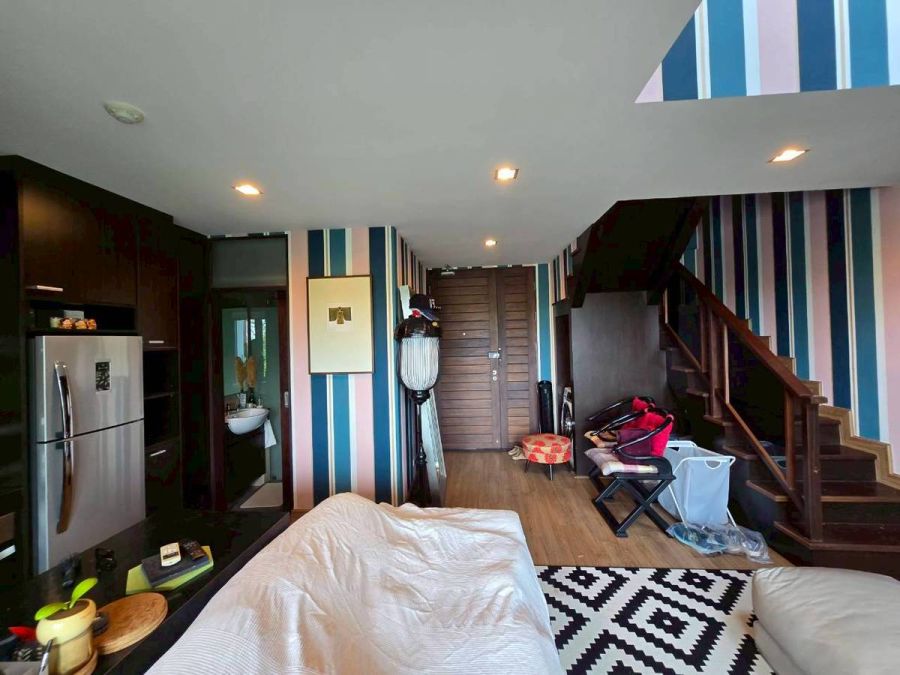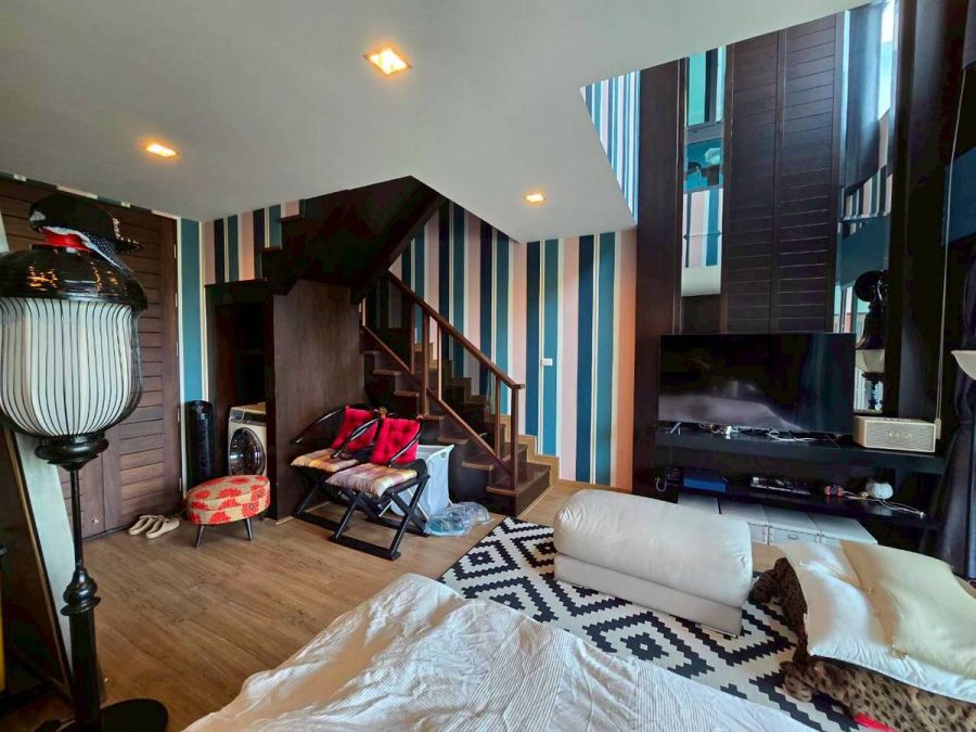 Duplex Loft Condominium เน้นให้แต่ละห้องมีพื้นที่กว้าง โดยเฉพาะระเบียงกว้างมาก วิวพาโนรามา ไม่มีอะไรบัง ภายในห้องตกแต่งคุมโทน และเฟอร์นิเจอร์อย่างดี พร้อมเข้าอยู่ และประตูห้อง Digital Door lock