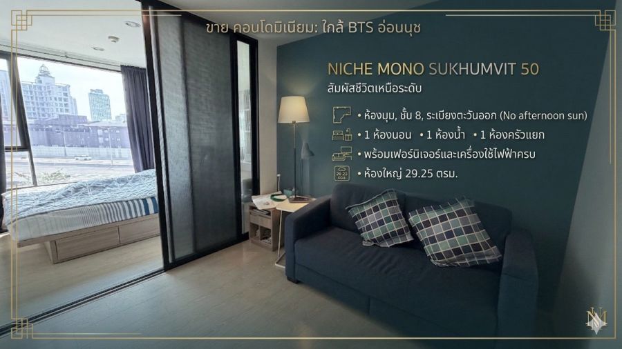 ขาย คอนโด 29.25 ตรม. นิชโมโน สุขุมวิท 50 ห้องมุม ชั้น 8 ใกล้ BTS อ่อนนุช