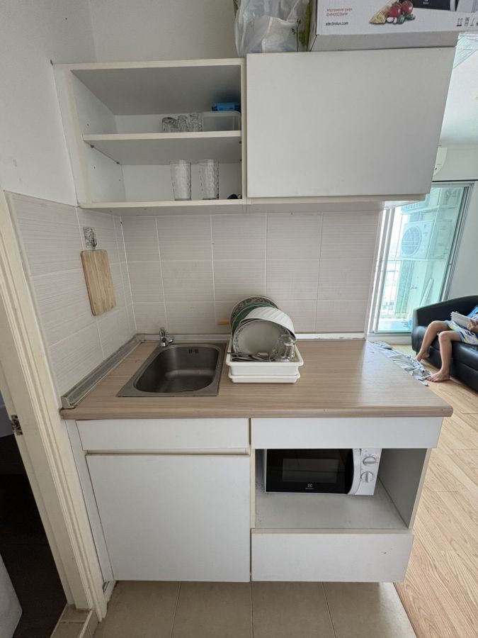 พื้นที่ 28.15 ตร.ม. ชั้น 14 1 ห้องนอน 1ห้องน้ำ ตู้เสื้อผ้า โซฟา โต๊ะกินข้าว แอร์ 2 ตัว ตู้เย็น ไมโครเวฟ