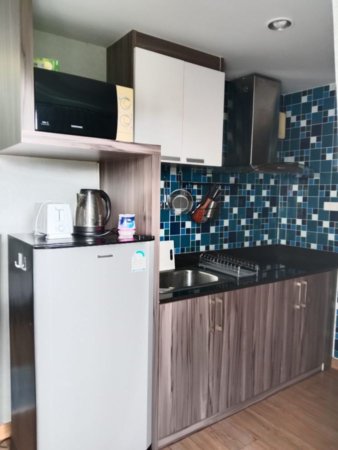 ห้องชุดตกแต่งขนาด1ห้องนอน 1ห้องน้ำ แอร์ ทีวี ชุดโซฟา โต๊ะรับประทานอาหาร ห้องครัว