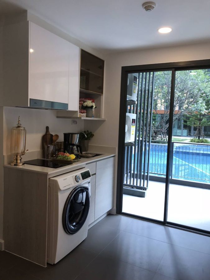-1 ห้องนอน 1 ห้องน้ำ 1 ห้องครัว 1 ห้องนั่งเล่น 1 ระเบียงริมสระ