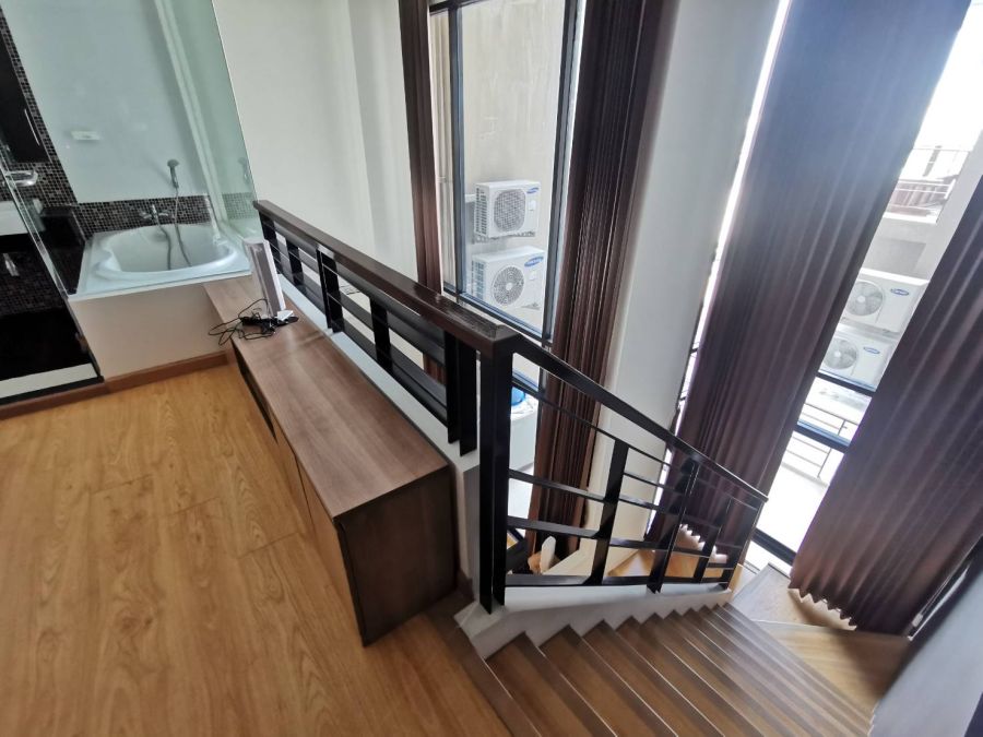 ห้องดูเพล็กซ์ โปร่งโล่ง สไตล์บ้านสองชั้น ระเบียงกว้างกว่าห้องอื่น