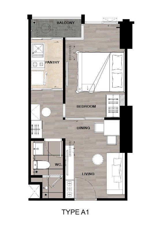 1 ห้องนอน 1 ห้องน้ำ 30.9 ตารางเมตร ชั้น 27 วิวสระ