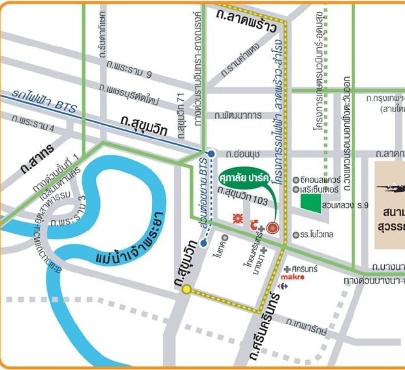 - ใกล้ห้างสรรพสินค้าเซ็นทรัลบางนา, เมกาบางนา, ซีคอนสแควร์ และ พาราไดซ์พาร์ค