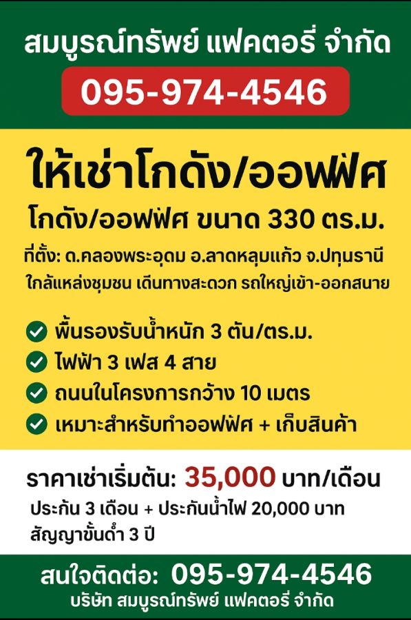 💰 ราคาเช่า: เริ่มต้นที่ 35,000 บาท/เดือน