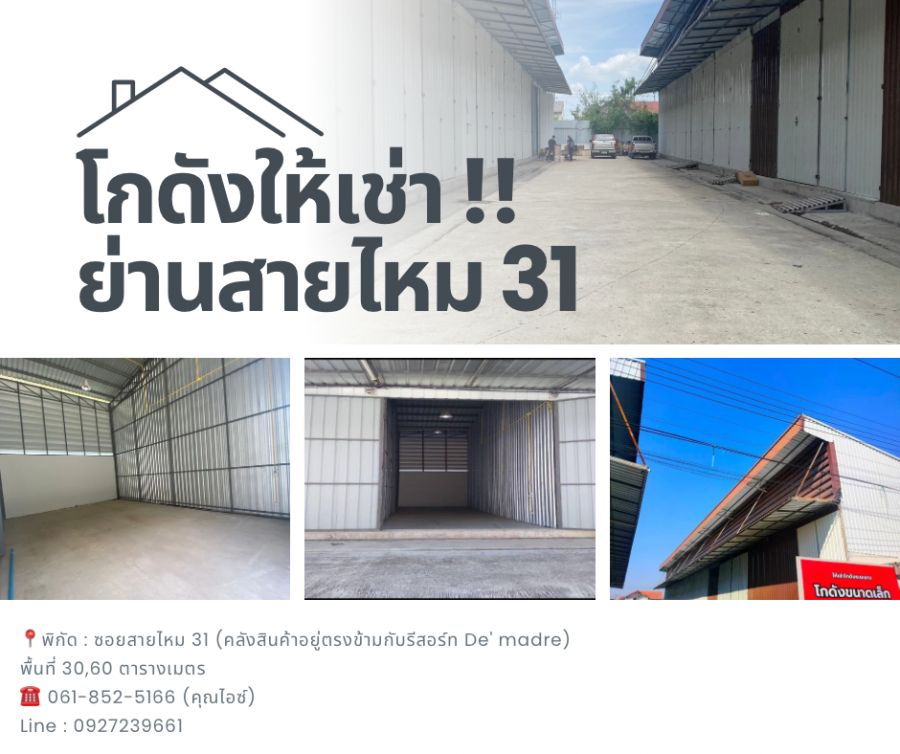 โกดังให้เช่า สายไหม 31 พื้นที่ 25 ตารางเมตร ว่างให้เช่า 1 ห้อง