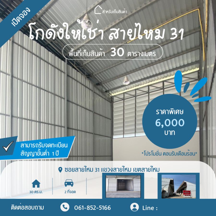 ▪️พื้นที่ใช้สอยภายในโกดัง 30,60 ตรม.