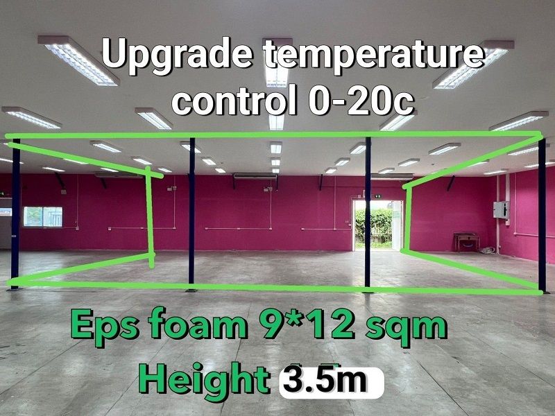 ระบบปิด พื้นที่สีชมพู ห้องเย็นควบคุมอุณหภูมิ 15-25c