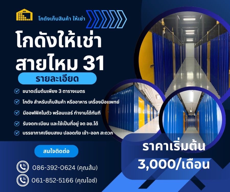 โกดังสายไหม 31 ให้เช่า เริ่มต้นเพียง 3,000 บาท / ขั้นต่ำ 3 ตร.ม.