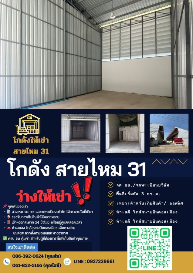 🏢✨ โกดังสายไหม 31 – พื้นที่ว่างให้เช่า ✨🏢