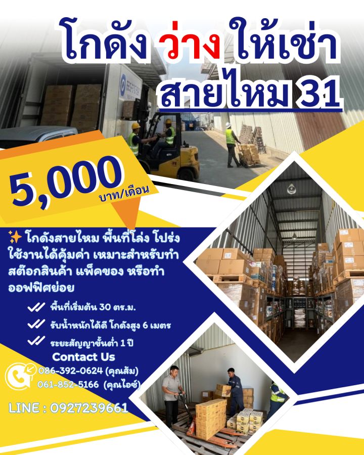 📦 โกดังสายไหม 31 ว่างให้เช่า ‼️ ด่วน