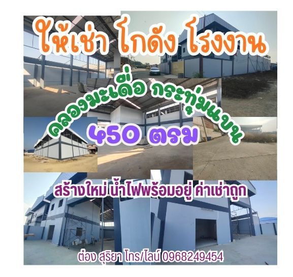 ให้เช่าโกดัง / โรงงาน สร้างใหม่ 450 ตรม. ใกล้ถนนเศรษฐกิจ 1 กม.12 คลองมะเดื่อ กระทุ่มแบน สมุทรสาคร ค่าน้ำไฟ 3 เฟส จ่ายตรงตามที่ใช้