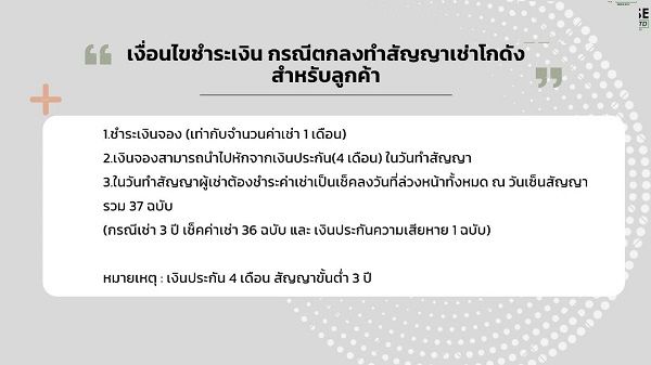 • เงินประกัน 4 เดือน สัญญาขั้นต่ำ 3 ปี