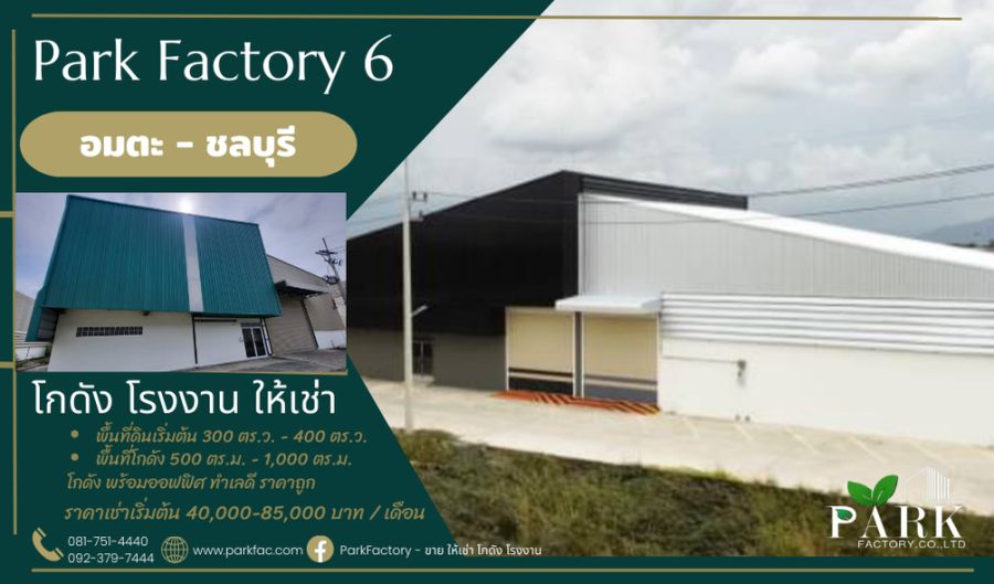ให้เช่า โกดัง พร้อมออฟฟิศ Park Factory 6 @นิคมอุตสาหกรรมอมตะ ซิตี้ ชลบุรี C15 อมตะ