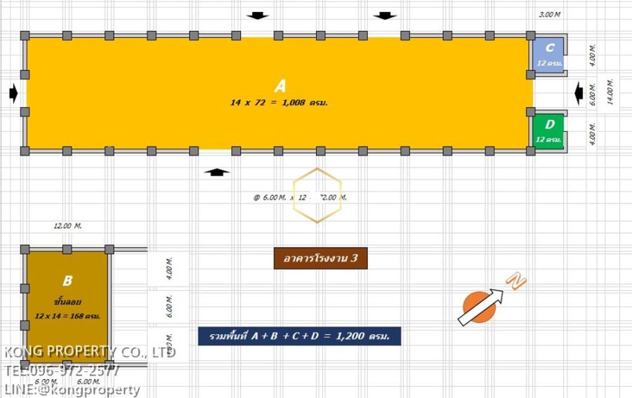 : พื้นที่โกดัง 1,008 ตรม (14*72 ม.)