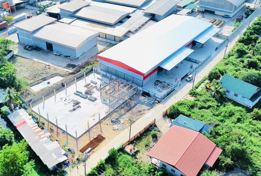 อาคารโกดังกว้างยาว 25 x 35.5 เมตร สำนักงานสองชั้นกว้างยาว 12 x 10 เมตร