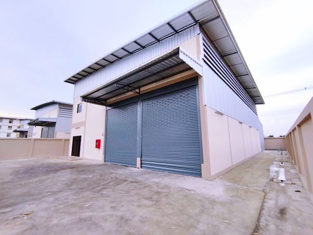 size 375–415sqm on 200sq.wah land with office space. on BanPhaeo Rd. DO HOME Mahachai 800m. Stand Alone Warehouse for Rent Samut Sakhon. Building Ideal for logistics light manufacturing and storage. Strategic location with easy access to main roads industrial zones and nearby communities. 34,998-39,999 B-M