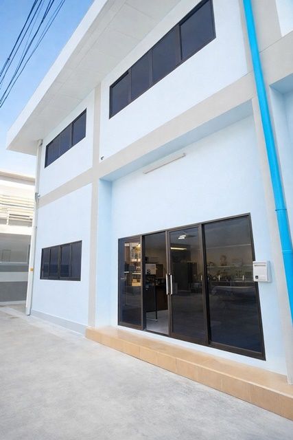 Thai Watsadu BangBon The cheapest 2 story factory building 100 sq.wa. 400 sq.m. in the world at 75baht-sqm. Solid structure 6 bed 3 bath near Wat Pho Chae 300 m. on Ekachai Road spacious area 29,998 B-M suitable for warehouse or business with adjacent residential space versatile use located in Samut Sakhon near community areas Mahachai New City Market 2.5 km. and convenient transportation