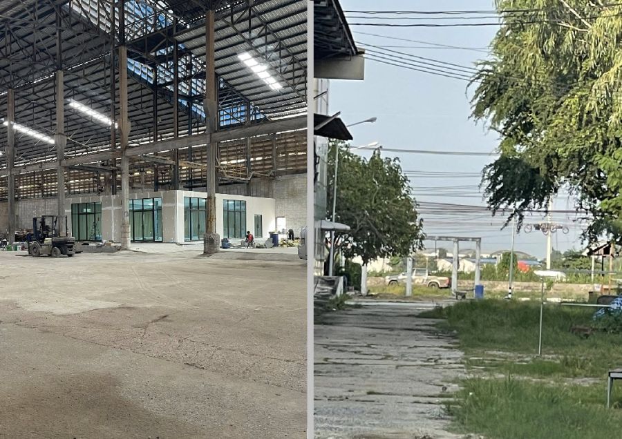 For Rent ให้เช่าโกดัง / โรงงาน พร้อมสำนักงาน พื้นที่ใช้สอย 2,640 ตารางเมตร / พื้นที่สีม่วง / ติดถนน 340 / ย่านบางบัวทอง ถนนบางบัวทอง สุพรรณบุรี / ฝั่งขาออก / ตรงข้าม คลังสินค้า Seven / รถใหญ่เข้าออกสะดวก