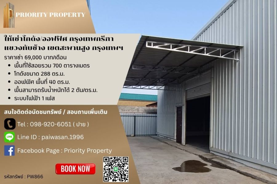 ให้เช่าโกดัง/ออฟฟิศ กรุงเทพกรีฑา แขวงทับช้าง เขตสะพานสูง กรุงเทพฯ พื้นที่ 700 ตร.ม.