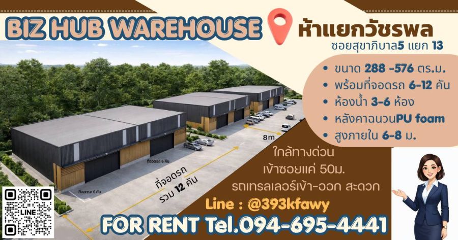 โกดังเปิดใหม่ให้เช่า สุขาภิบาล 5 ใกล้ดอนเมือง-ทางด่วน ทำเลทองห้าแยกวัชรพล รถใหญ่เข้าได้สบาย
