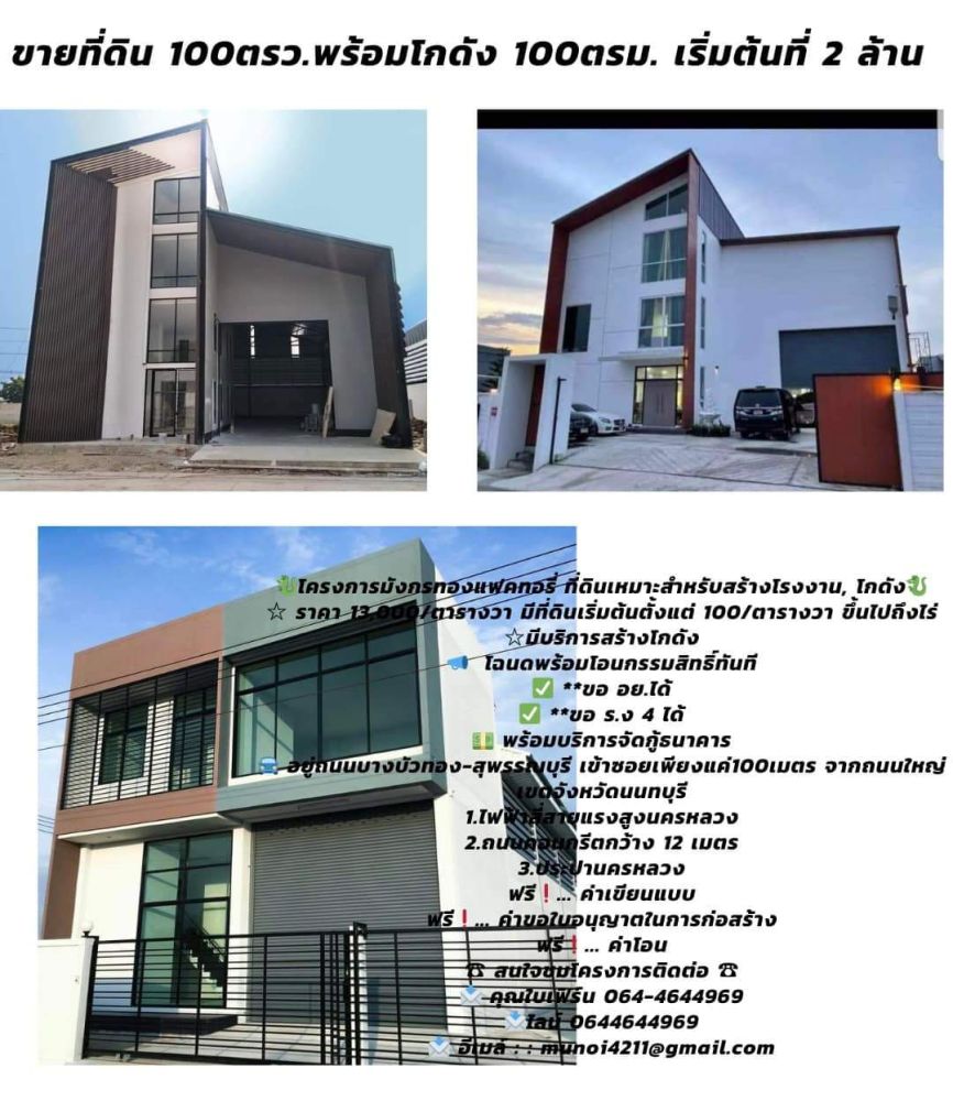 ขายที่ดิน100 ตรว.ขึ้นไปจนถึง 5ไร่ เพื่อสร้างโกดัง โรงงานพร้อมออฟฟิศ สร้างใหม่
