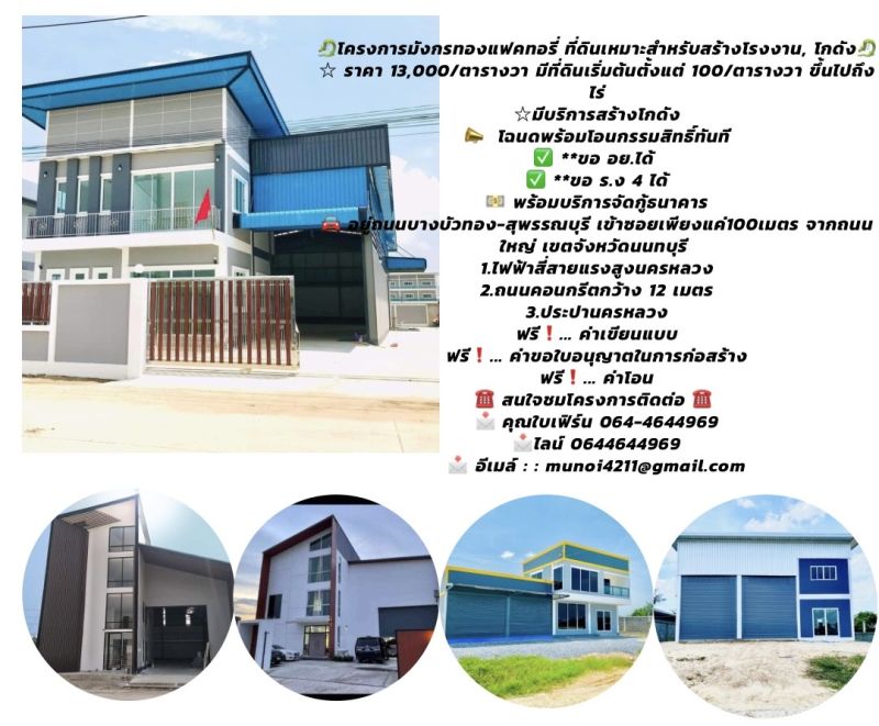 ได้ที่ดิน 100 ตารางวากับโกดัง 100 ตารางเมตร ราคา2.2ล้านบาท