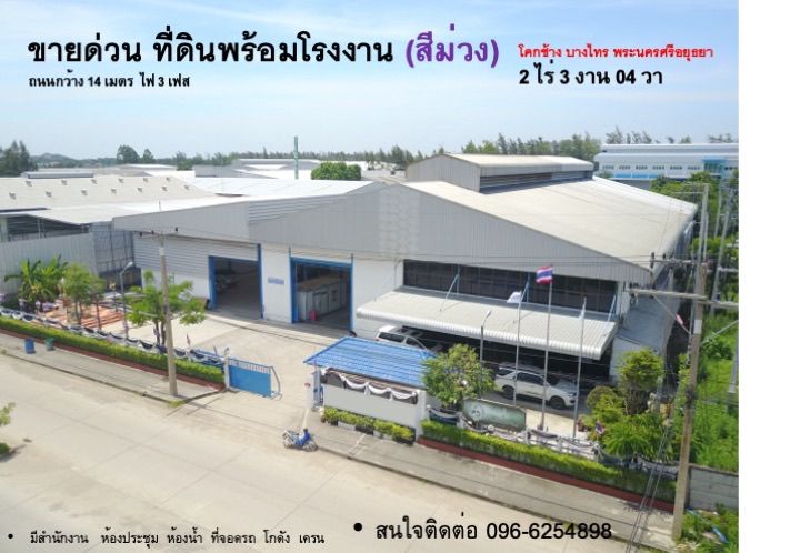 ขายด่วนโรงงานและสำนักงานทำเลทอง ตำบลโคกช้าง อำเภอบางไทร จังหวัดพระนครศรีอยุธยา
