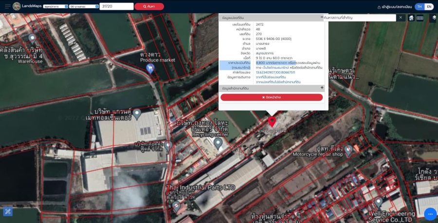 • เฉพาะแปลงหลัง 9 ไร่ (ที่ดินเปล่าสีม่วง): 50 ล้านบาท