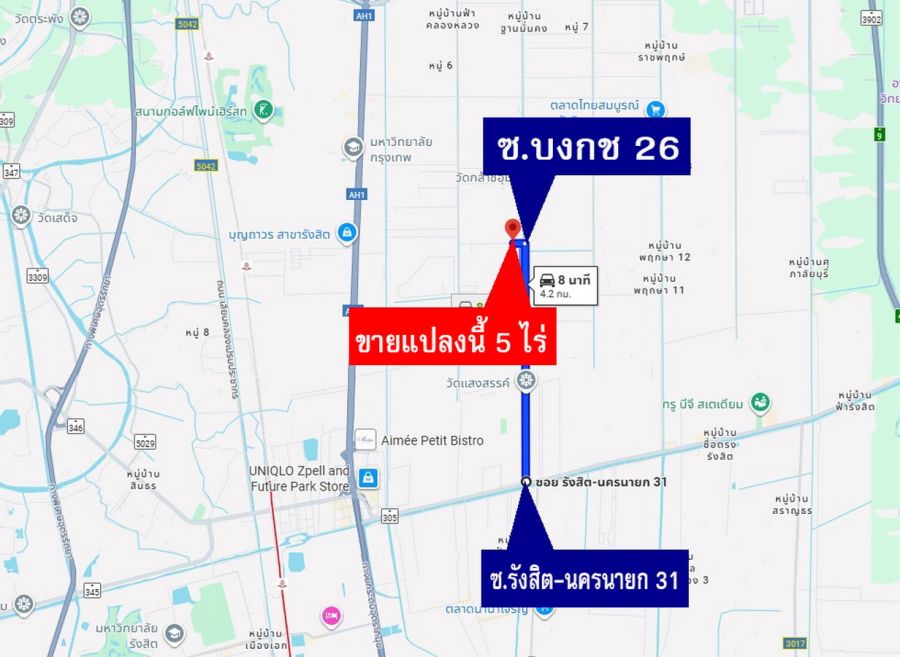 - เข้า - ออก ได้ ทั้ง จาก ถนนรังสิต- นครนายก 31 คลองสองไป 4.2 กม.