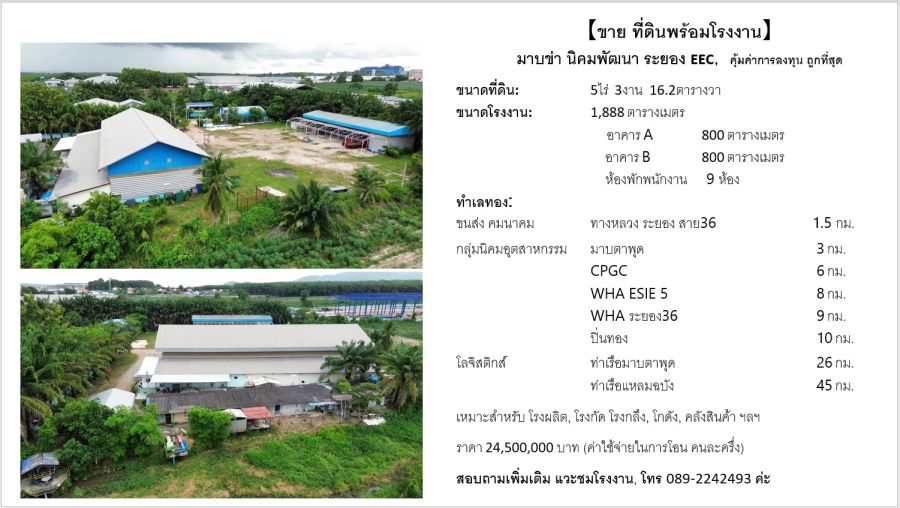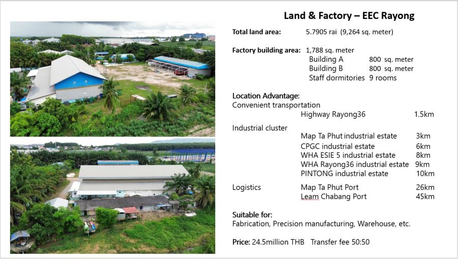 ขาย ที่ดินพร้อมโรงงาน มาบข่า นิคมพัฒนา EEC ระยอง