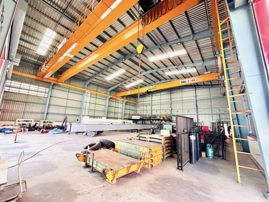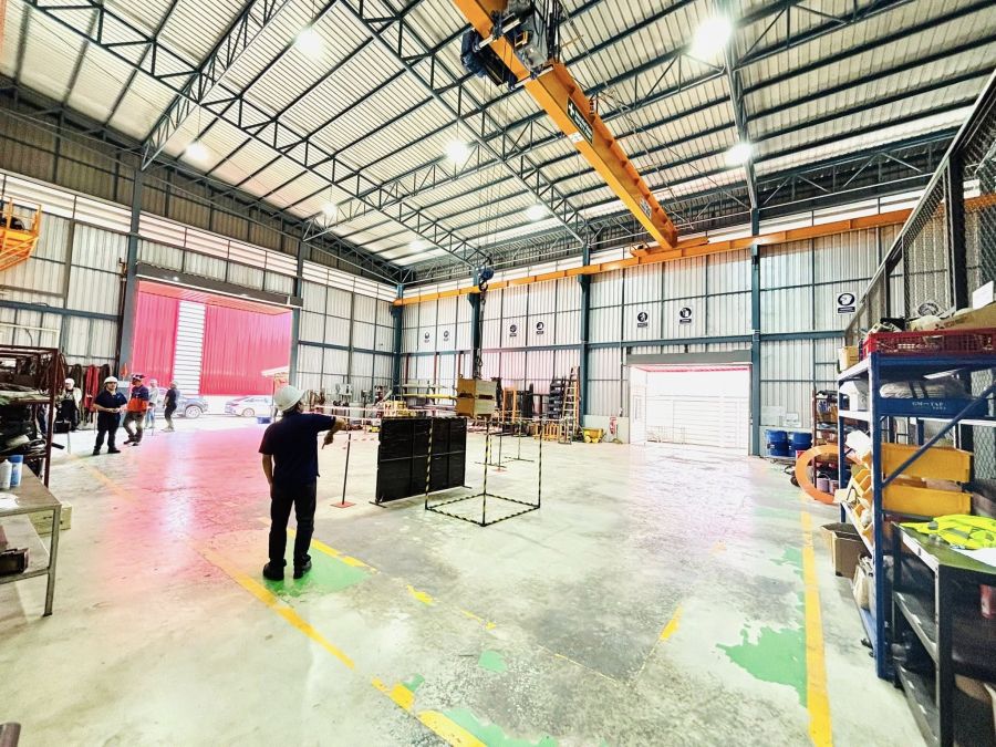 1. ส่วนโรงงาน มีหนึ่งชั้น ขนาดอาคาร 24 x 34 เมตรพท.ใช้สอย 816 ตร.ม. หลังคาสูง 10 เมตร แถมเครนให้ 3 ตัว มี 10 ตัน คานคู่ กับ 5 ตัน สองตัวคานเดี่ยว